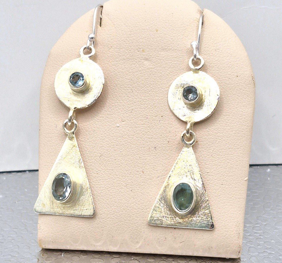 The circle has not beginning or end symbolizing the endless nature of existence. The triangle represents the power of three. You will embody these when you wear these natural blue topaz and 925 sterling silver earrings.