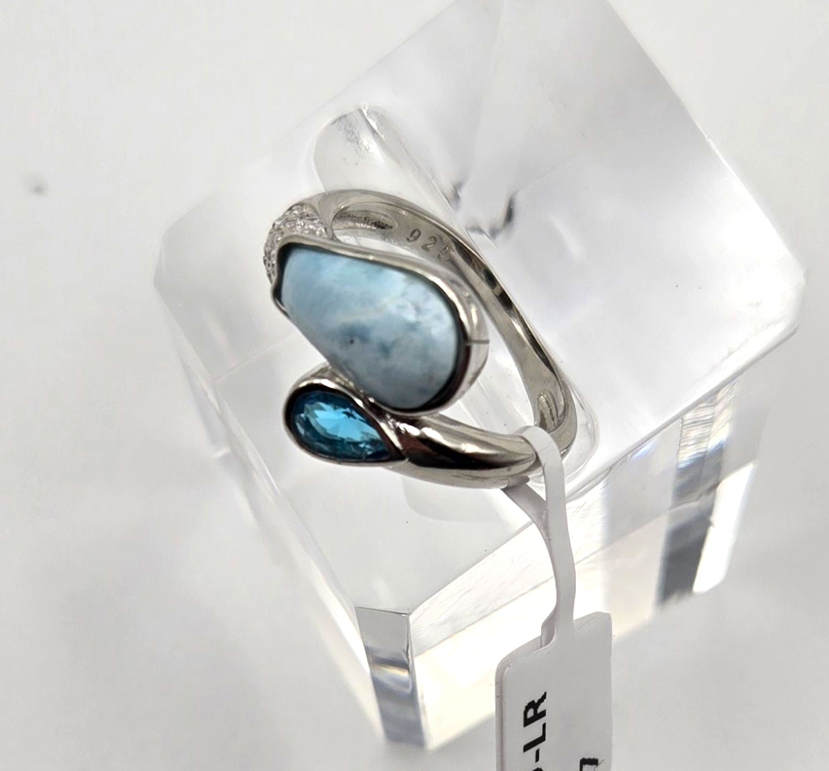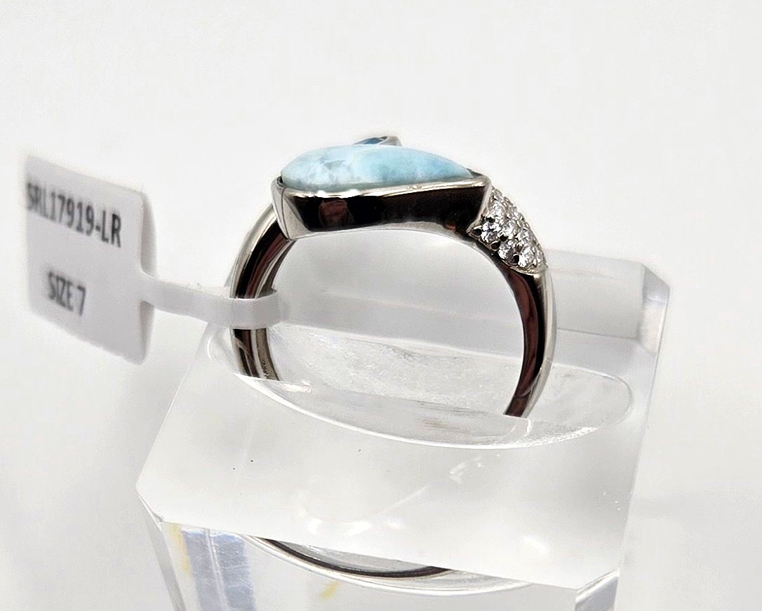 Natural Larimar & Blue Topaz .925 SterlingĀ Silver Ring Size 7